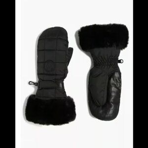 MICHAEL KORS BLACK QUILTED MITTENS WITH FAUX FUR TRIM GLOVES S/M