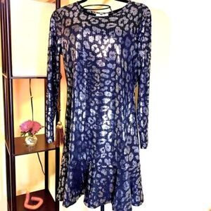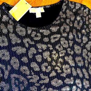 Absolutely gorgeous MICHAEL KORS BLACK & SILVER METALLIC LEOPARD PRINT SHIFT DRESS