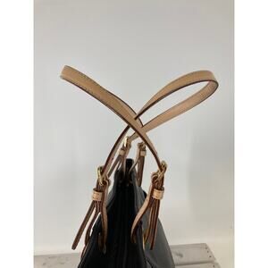 MICHAEL KORS, BLACK, TAN PEBBLED LEATHER SHOULDER BAG