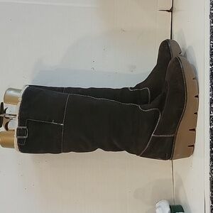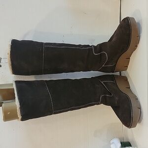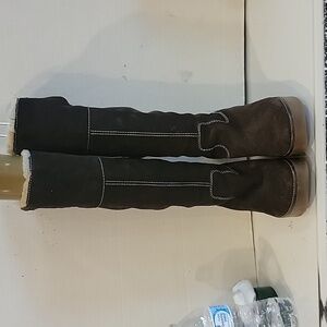 Michael Kors brown suede leather knee boots 👢. The boots have a 2" heel. They are pull-on and there is a buckle on the side that can open to create an easier way to pull the boots on. They are in great condition. The boots are lined with serpa lining. Please see all pictures