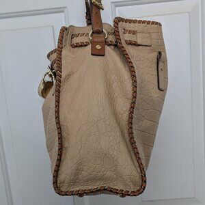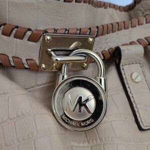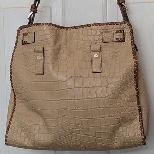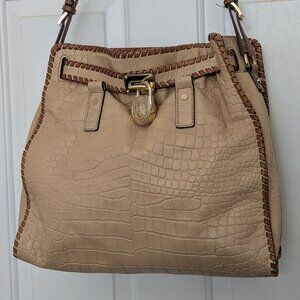 MICHAEL KORS Beige Croco Large Hamilton Whip-Stitch Chain Shoulder Bag Satchel . Good Condition. I think the handles were removed. You can see the photos for condition.