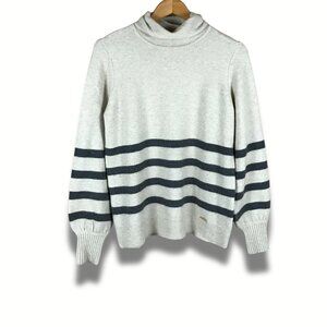 MICHAEL KORS Merino Wool/Alpaca Beige/Gray Striped Poet Sleeve Turtleneck Sweater