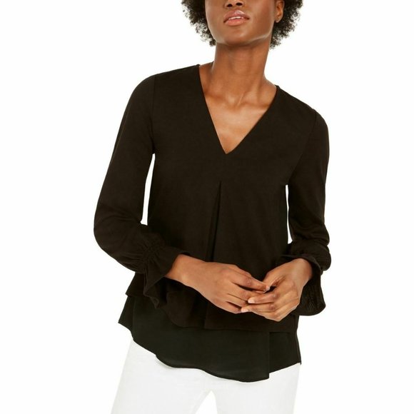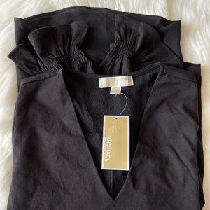 MICHAEL KORS Black Flare-sleeve Mixed Media Blouse Top SIZE SMALL NWT pit to pit 18" Length 25" stretchy