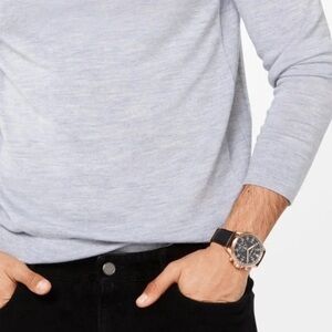 MICHAEL KORS • Black Leather Access Gage Rose Gold Hybrid Smart Watch