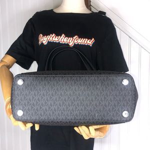 MICHAEL KORS Black Monogram Leather and Coated Canvas Top Zipper Shoulder Bag