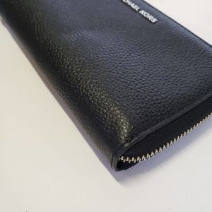 MICHAEL KORS Black Pebble Leather Zip Around Wallet Medium Phone Clutch 7x4 Logo