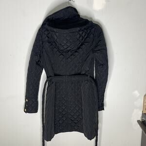 MICHAEL KORS Black Quilted Polyester Belted Hooded Winter Coat Size Small. EUC.