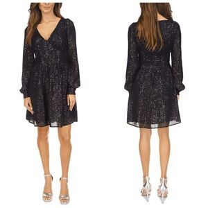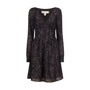🖤✨ MICHAEL KORS Black Sequin Stripe Long Sleeve V-Neck Dress SIZE M $195 NWT