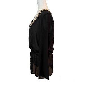 MICHAEL KORS Black Sheer Cover Up Gold Embellished
