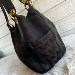 MICHAEL KORS Black Signature Fulton Drawstring Bedford Shoulder Bag Hobo Tote