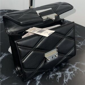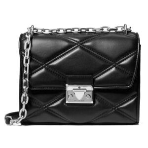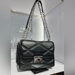 MICHAEL KORS Black Silver Serena Quilted F. Leather Crossbody Bag AUTHENTIC NWT
