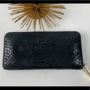 MICHAEL KORS Black Snake Skin Embossed Leather 8” X 4” Zip-Around Carry-All Wallet.