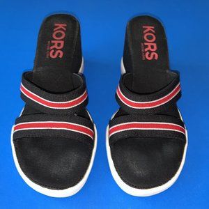 MICHAEL KORS Black Wedge Slip-On Sandals Size 6