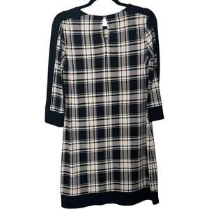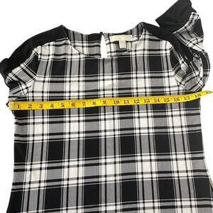 Stylish Michael Kors black and white plaid mini dress! This 60s-inspired piece features a flattering shift silhouette and a timeless plaid pattern reminiscent of The Queen's Gambit. Perfect for adding a touch of vintage charm to your wardrobe.