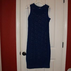 MICHAEL KORS Blue Sweater-Lace Sheath Dress M NEW