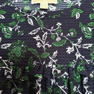 MICHAEL KORS Boho Peasant Blouse M Ruffled Tiered Fairy Bell Sleeve Waffle Knit