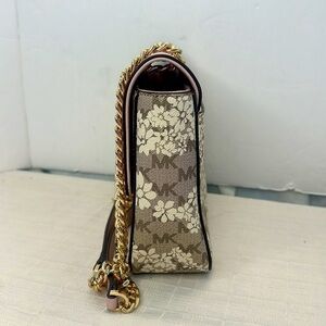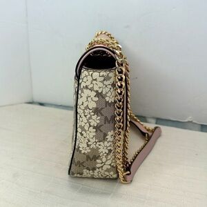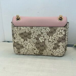 MICHAEL KORS Brandi MK Monogram Floral Flap Bag Pink Saffiano Leather Gold Chain