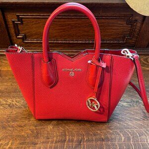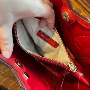 Beautiful candy apple like bright red Michael Kors Mae Bag.