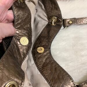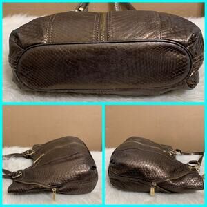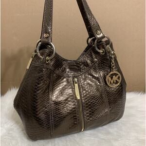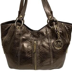 MICHAEL KORS Bronze Snakeskin Embossed Leather MOXLEY Shoulder Tote