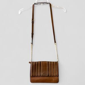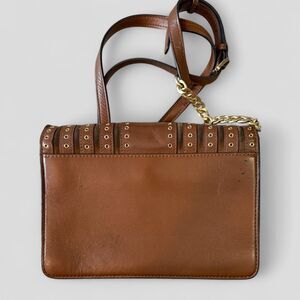 MICHAEL KORS Brooklyn Crossbody Purse Grommet Leather Saddle Caramel Brown Bag