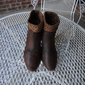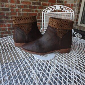 MICHAEL KORS Brown Leather "Sunny" Laser Cut Booties Size 7.5