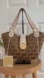 Soft beige leather accents along the trim, handles, and base add a touch of understated elegance, creating a beautiful contrast against the signature pattern.