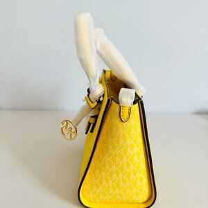 MICHAEL KORS CHARLOTTE SM SIG LOGO CANVAS LEATHER 3-IN-1 SATCHEL YELLOW