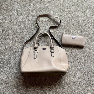 MICHAEL KORS CIARA BEIGE CREAM LARGE SAFFIANO LEATHER SATCHEL BAG AND WALLET