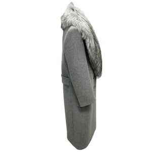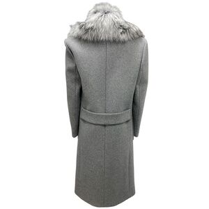 Michael Kors Collection Grey Banker Melange Wool Melton and Faux Fur Double Breasted Coat