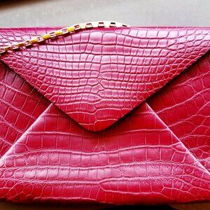 Michael Kors Collection Exotic Skin Crocodile Merlot Clutch Envelope Bag