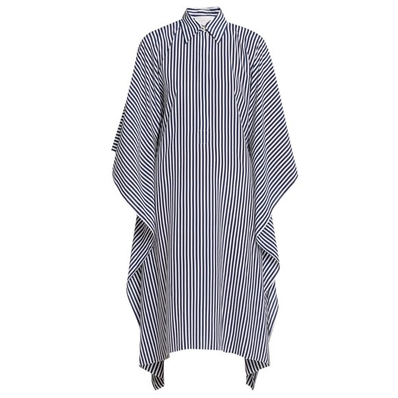 MICHAEL KORS COLLECTION SEA MULTI STRIPE MIDI SILK CAFTAN SHIRT DRESS
