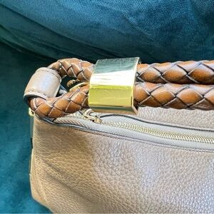 MICHAEL KORS COLLECTION Skorpios Desert Tan Pebbled Leather Hobo Bag $79…