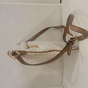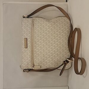 Michael Kors crossbody handbag. The bag has a single compartment with a slide pocket perfect for your phone. There are also 6 slide pockets for cards. There is a zippered pocket on the front and a slide pocket on the back. The bag is in very good condition. Strap length: 51" Please see all pictures.