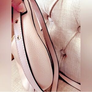 This MICHAEL KORS Camden Medium Powder Blush Pebbled Leather Messenger Bag is in Exceptional Used Condition (EUC): Previously lovingly cared for; but this is a preloved (used) item, some normal and minimal wear is expected; beautiful bag, color transfer to back, wear to hardware, otherwise good condition. Depending on device used, color may vary. Review pics as they’re part of the description. Sold as is, no refunds. All auction bids/wins are final, no cancellations.