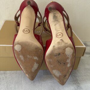 MICHAEL KORS Catia Red Pointed Toe Strappy High Heels 4" Patent Leather Sz.8
