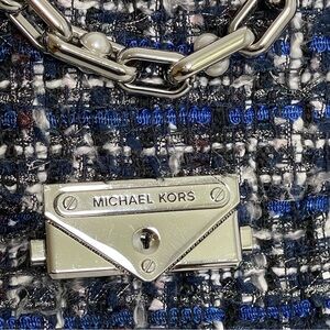 MICHAEL KORS Cece Tweed Small Shoulder Crossbody Satchel Bag Silver Chain Luxury
