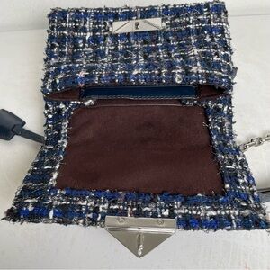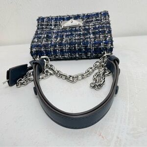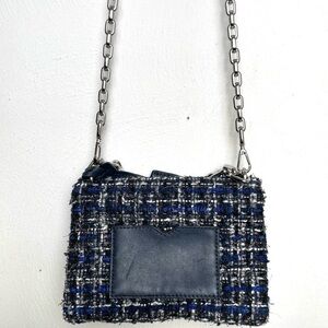 Absolutely precious and gorgeous very small tweed bag by Michael Kors. Beautiful colorway of blue, black, gray, white , mand purple fibers.