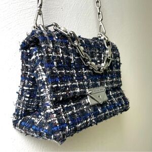 MICHAEL KORS Cece Tweed Small Shoulder Crossbody Satchel Bag Silver Chain Luxury