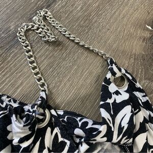 MICHAEL KORS Chain Link Straps Floral Sweatheart Peplum Wrap Blouse Womens Large