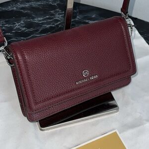 MICHAEL KORS Charm Small Phone Crossbody Bag Berry Red AUTHENTIC Minor Defect