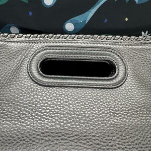 Chelsea Metallic Dark Silver Gray Whipped Bag Clutch Handbag. Silver hardware. Double magnetic closure.