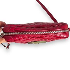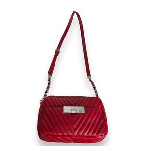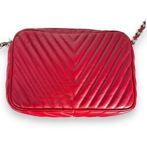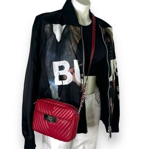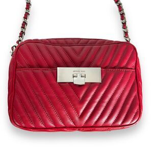 MICHAEL KORS Cherry Red Susannah Lock Messenger Crossbody Bag Purse Chevron Quilt