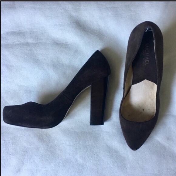 MICHAEL KORS Chocolate Brown Suede Leather Pointed Toe Chunky Stiletto Heel 9