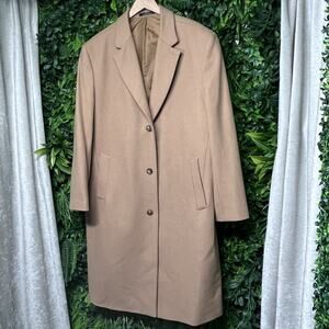 MICHAEL KORS Coat Mens 44R Tan Jacket 100% Wool Blend Lined Button Over Coat