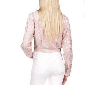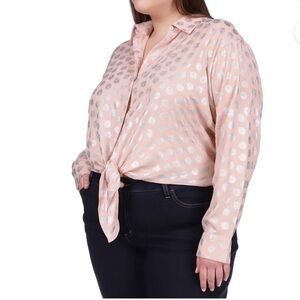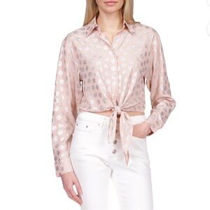 MICHAEL Michael Kors brings a polished twist to this button-down tie-front shirt. Metallic silver print.