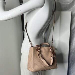 MICHAEL KORS Cynthia Small Saffiano Leather Beige Satchel Crossbody Shoulder Bag