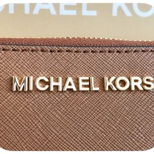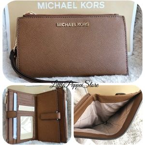 NWT MICHAEL MICHAEL KORS SAFFIANO LEATHER JET SET TRAVEL DOUBLE ZIP WALLET IN LUGGAGE
