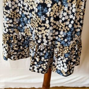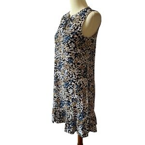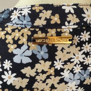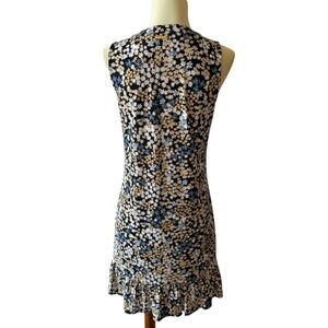 MICHAEL KORS DRESS TIE NECK JERSEY STRETCH BLACK WHITE DITZY FLORAL RUFFLE XS