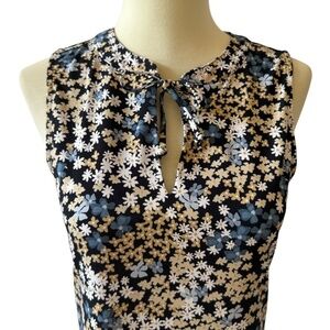 Summer, vacation, wrinkle resistant, office, preppy, school, brunch. feminine, polished, effortless, soft stretch jersey, floral print, sleeveless elegance, tie-neck detail, chic day-to-night, tailored fit, modern romantic, versatile, sophisticated casual, lightweight comfort, timeless appeal, graceful silhouette