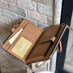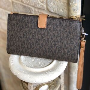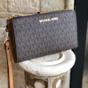 MICHAEL KORS Double Zip LOGO VanillaBrown Wristlet